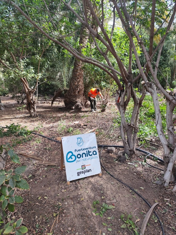 Los trabajos van desde la limpieza y adecentamiento de espacios como el nuevo aparcamiento a labores de desbroce, poda y limpieza de corredores de El Palmeral o desbroce y limpieza en los márgenes de la carretera FV-603, también en Costa Calma.