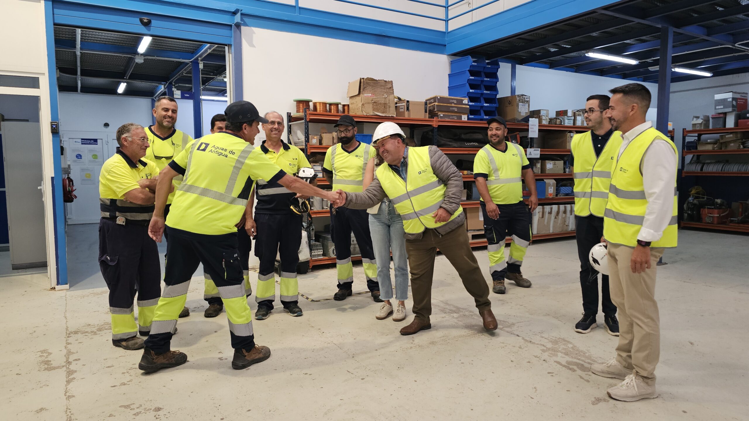 • El alcalde, presidente de Aguas de Antigua, Matías Peña, anuncia la adjudicación inminente de tres nuevas instalaciones solares por 200.000 euros que supondrán un ahorro adicional del 7,75%.