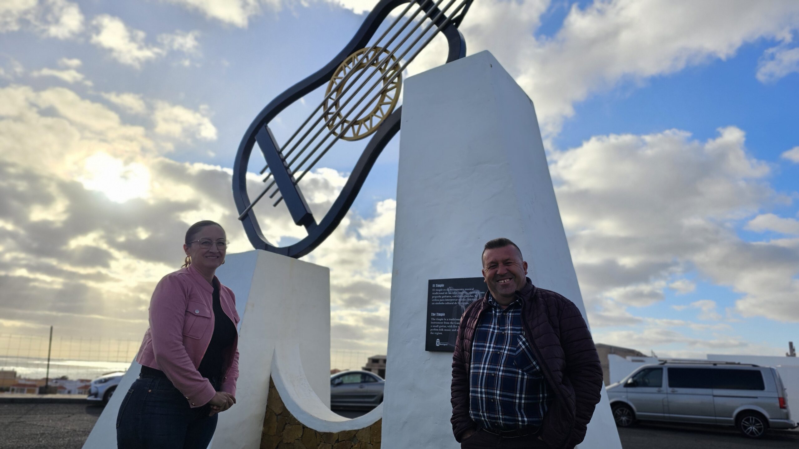 Los diseños gigantes de estas esculturas se localizan en rotondas principales y en accesos a las localidades, dando la bienvenida y recordando la historia que nos identifica en cada pueblo y lugar, añade Sandra Torres. Son cinco representaciones a gran tamaño de un timple, una plancha de carbón, la palmatoria, un candil y el telar.