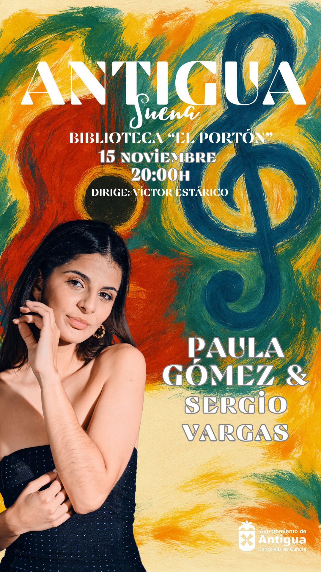 Volvemos a señalar el patio de la Biblioteca de Antigua, como un lugar de encuentro, recogido y perfecto para disfrutar de eventos de calidad, de armonías cercanas, en esta ocasión con Antigua Suena, un programa artístico dirigido por el conocido timplista Víctor Estárico, afirma el concejal de Cultura, Jonathan Peña, dando comienzo este sábado a las 20:00 horas con dos destacados músicos canarios como Paula Gómez y Sergio Vargas.