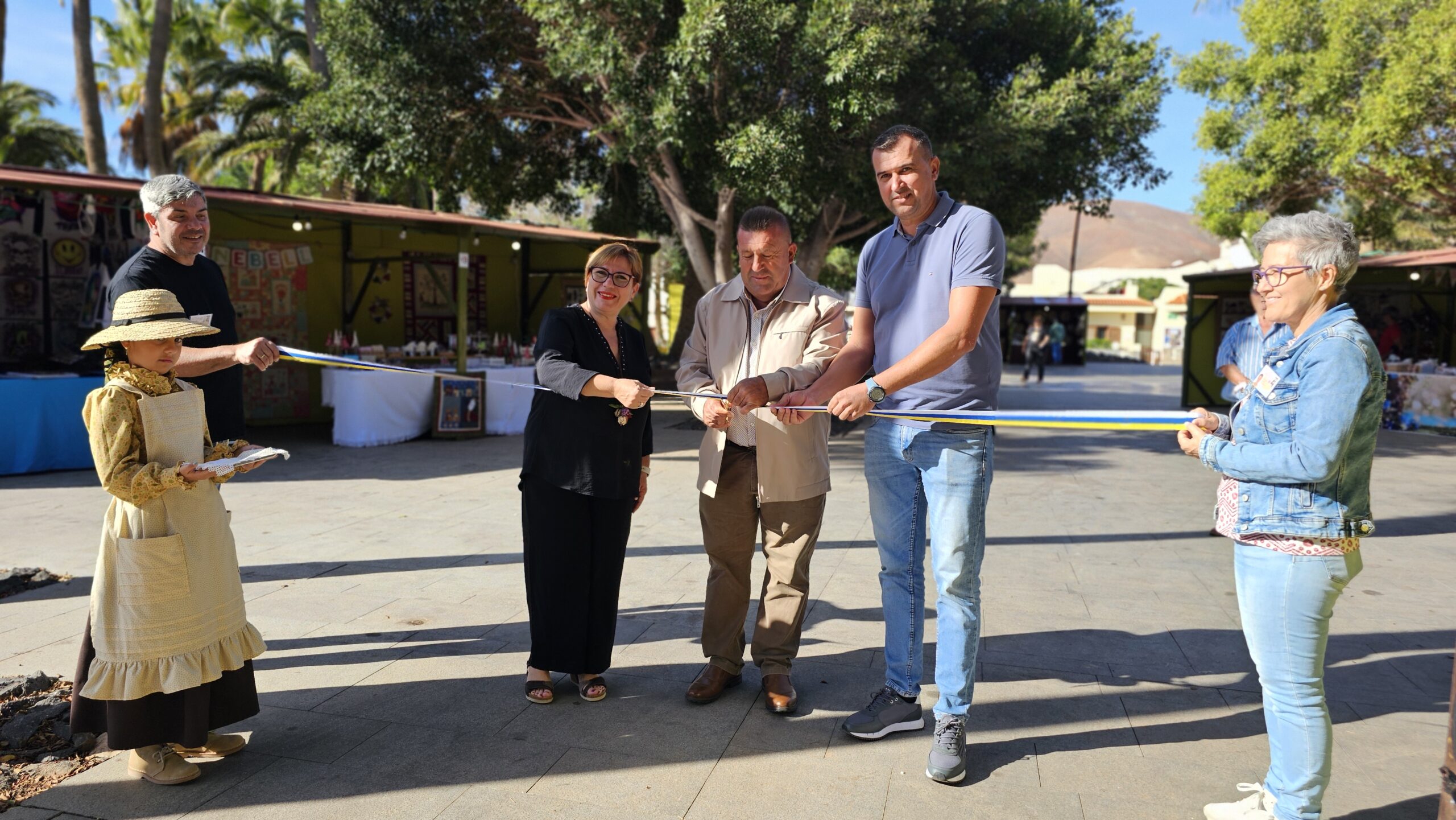 El corte de cinta ha simbolizado una apertura a la quinta edición del Encuentro y Venta de Artesanía en la plaza de Antigua, con una treintena de artesanos y artesanas de oficio expectantes y preparados con elaborados y diferentes trabajos para atender a un público que ha sido continuo durante toda la jornada, paseando, mirando, regresando después sobres sus pasos para comprar esto y aquello que más les llamó la atención.
