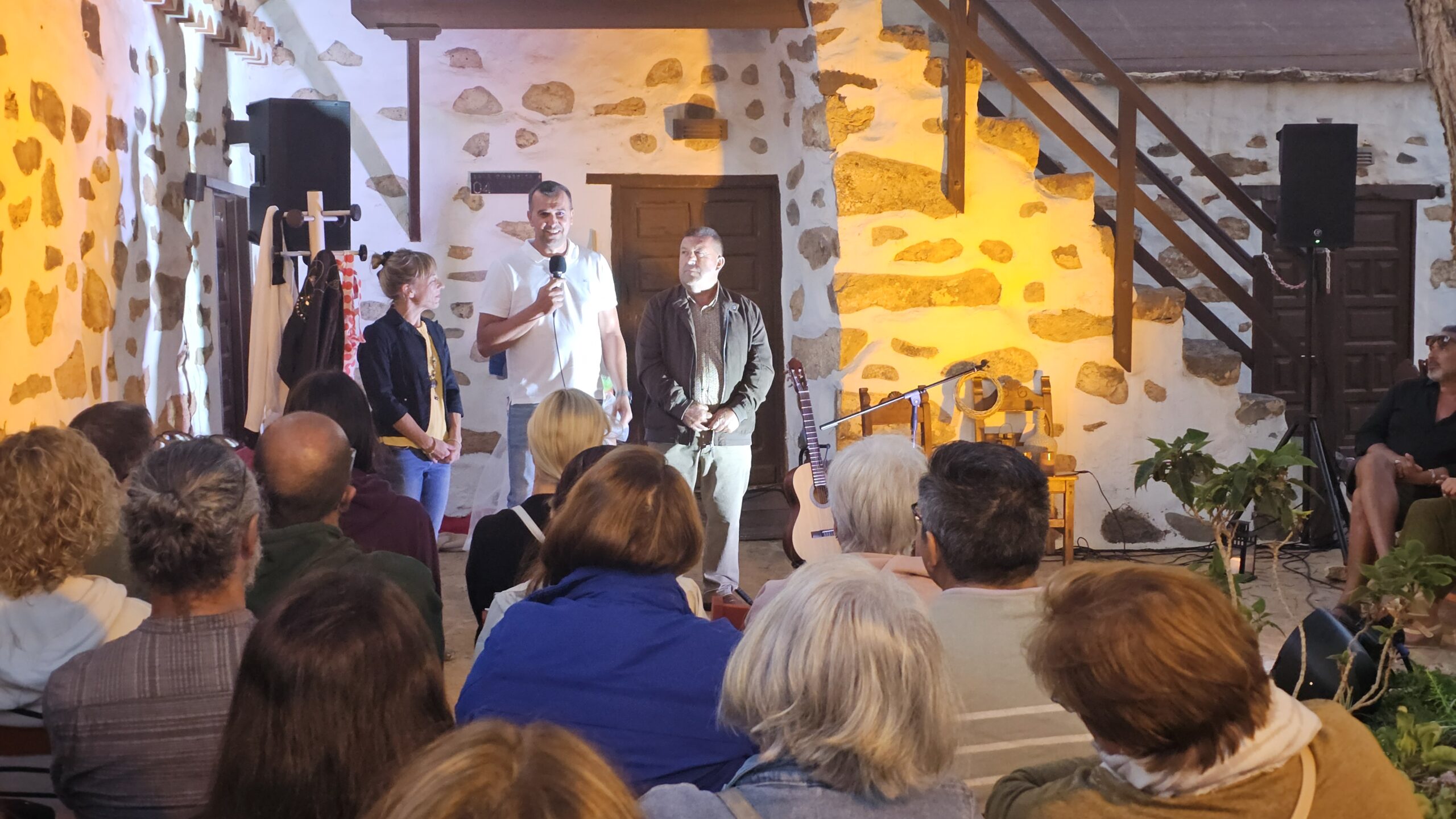 El alcalde Matías Peña y el concejal de Cultura, Jonathan Peña, dieron la bienvenida a esta quinta edición de Candil de Cuentos, reconociendo el valor artístico de su directora Gema Gutiérrez Escobar, que con mucho compromiso y más cariño ha dado con la receta del éxito de esta cita que reúne a los mejores narradores orales de la isla, y a un público que gusta escuchar en un espacio tan propicio como es el patio de la Biblioteca Municipal de Antigua.
