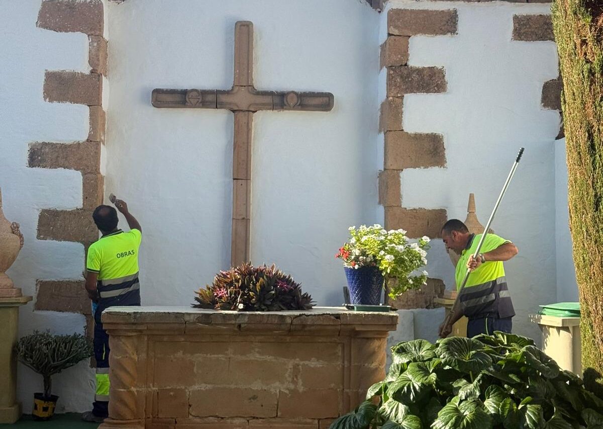 El Ayuntamiento de Pájara, a través de la Concejalía de Cementerios, ha llevado a cabo durante los últimos días diversas labores de limpieza y reacondicionamiento en los cementerios de Pájara, Morro Jable y Cofete, con el objetivo de que estos espacios estén en las mejores condiciones para la conmemoración del Día de los Difuntos y de Todos los Santos.