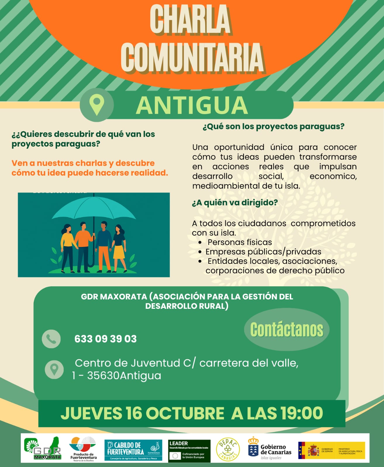 El Cabildo de Fuerteventura y GDR Maxorata continúa apoyando las iniciativas ciudadanas a través de los proyectos paraguas. Se trata de una diseñada para facilitar la ejecución de proyectos a propuesta de la ciudadanía, eliminando los trámites burocráticos habituales, transformando esas ideas en acciones reales que impulsen el desarrollo social, económico y medioambiental. La iniciativa se desarrolla dentro del programa Leader del PEPAC 2023-2027, enmarcada en la Estrategia de Desarrollo Local Participativo de la isla.