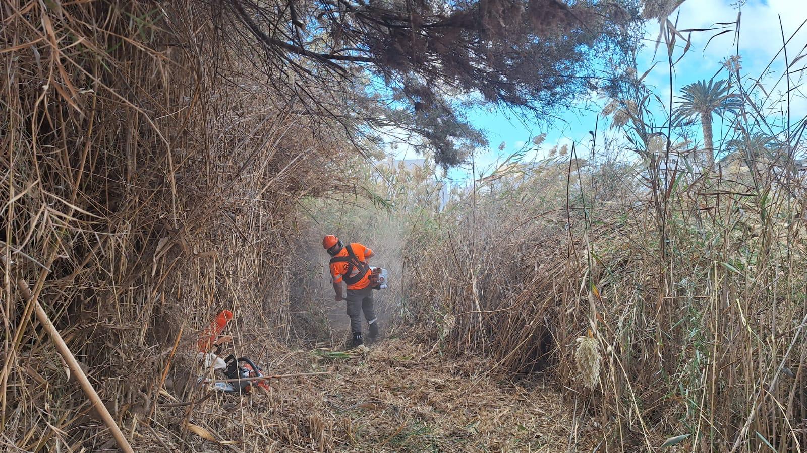 El Cabildo completa una intensa limpieza y desbroce de la carretera de entrada a Gran Tarajal y de la desembocadura del barranco