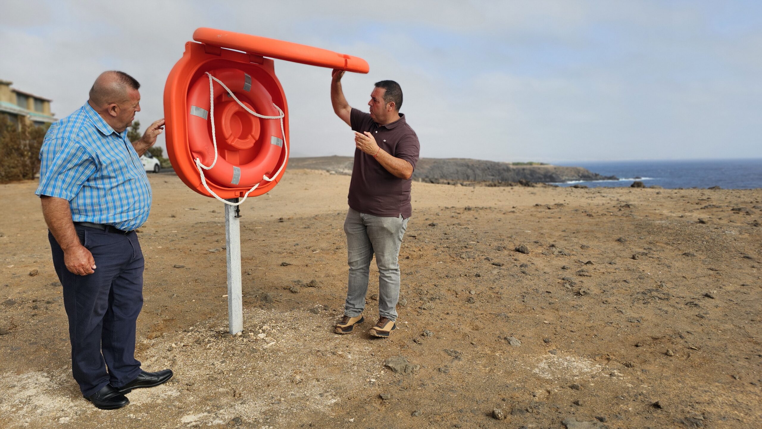 El alcalde, Matías Peña y el concejal de Seguridad y Emergencias, Fernando Estupiñán han comprobado la instalación de ocho nuevos Aros Salvavidas en zonas costeras como Costa de Antigua, Paseo marítimo de Caleta de Fuste, litoral de La Cueva o el de Salinas del Carmen a Pozo Negro, y todos aquellos entrantes al mar, no siendo playas, como piscinas naturales o pequeñas calas.