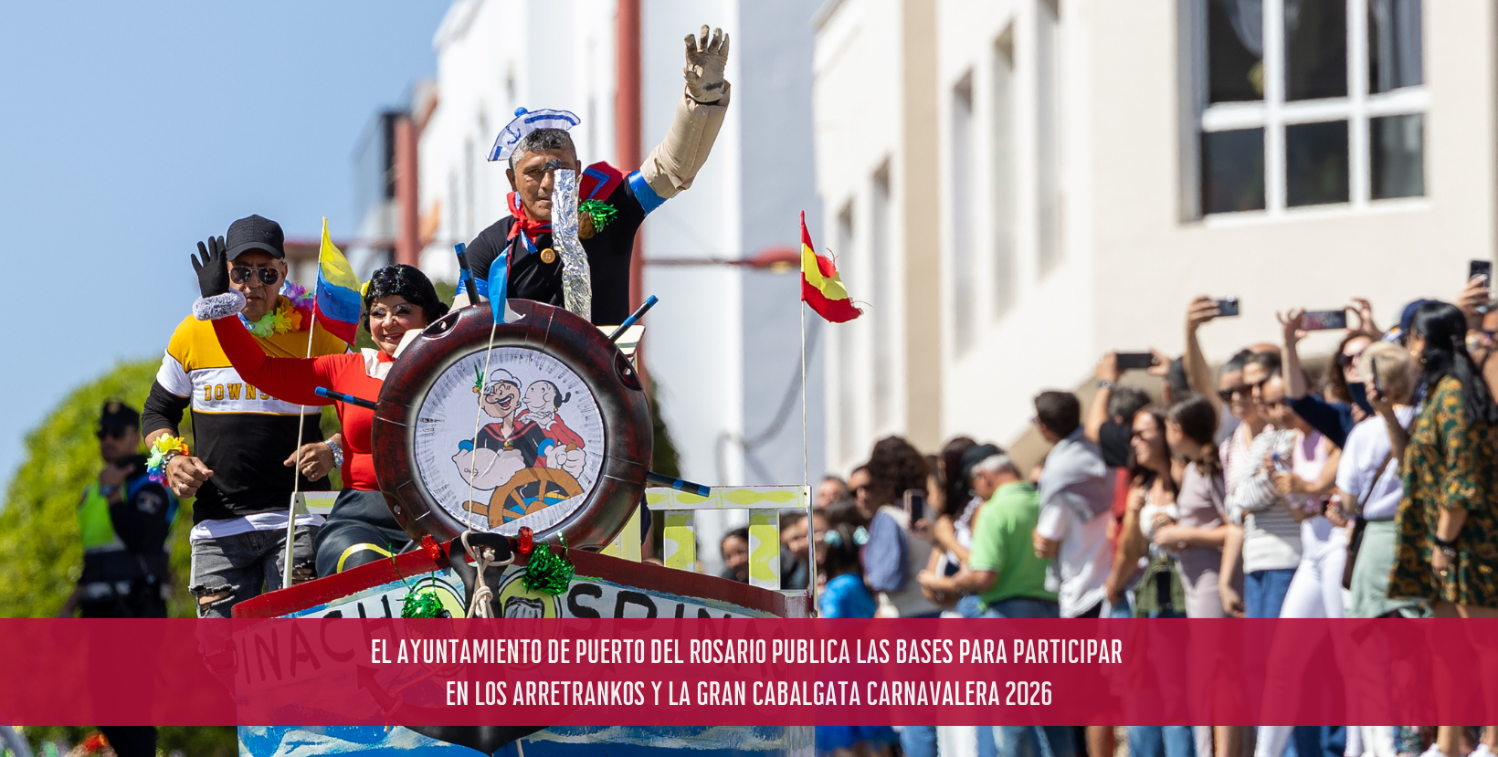 En Puerto del Rosario, a 15 de enero de 2026.- El Ayuntamiento de Puerto del Rosario ha publicado en su web municipal las bases reguladoras para aquellas personas o grupos interesados en participar en la Carrera de Arretrankos y en la Gran Cabalgata Carnavalera del Carnaval 2026, que se celebrarán los días 7 y 14 de febrero, respectivamente.