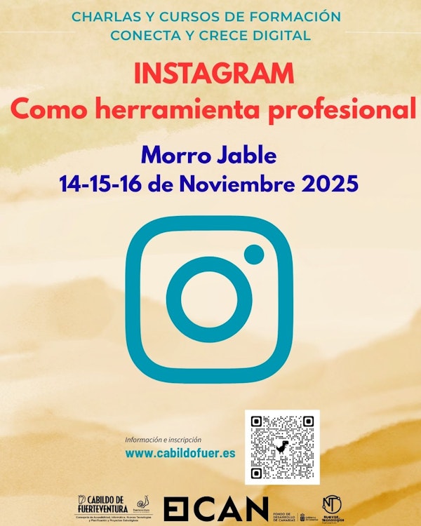 El Cabildo de Fuerteventura, a través de la Consejería de Informática y Nuevas Tecnologías, prosigue con su programa formativo dirigido a reducir la brecha digital y fomentar la capacitación tecnológica en la isla. Tras el éxito de las primeras jornadas celebradas en octubre, se pone en marcha una nueva acción dedicada a Instagram como herramienta profesional, que tendrá lugar los días 14, 15 y 16 de noviembre en Morro Jable.