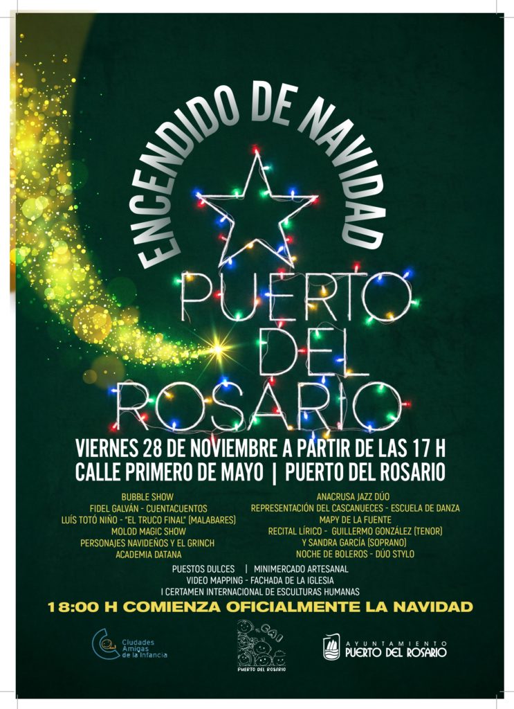 En Puerto del Rosario, a 18 de noviembre de 2025.- El Ayuntamiento de Puerto del Rosario dará inicio a la Navidad 2025 este viernes 28 de noviembre, con el esperado Encendido de Luces, que tendrá lugar en la calle Primero de Mayo desde las 17:00 horas. Este evento marca el arranque de una programación navideña que este año llega cargada de novedades, tradición y un calendario más amplio que ocupará prácticamente todo el mes de diciembre y principios de enero.