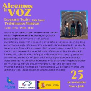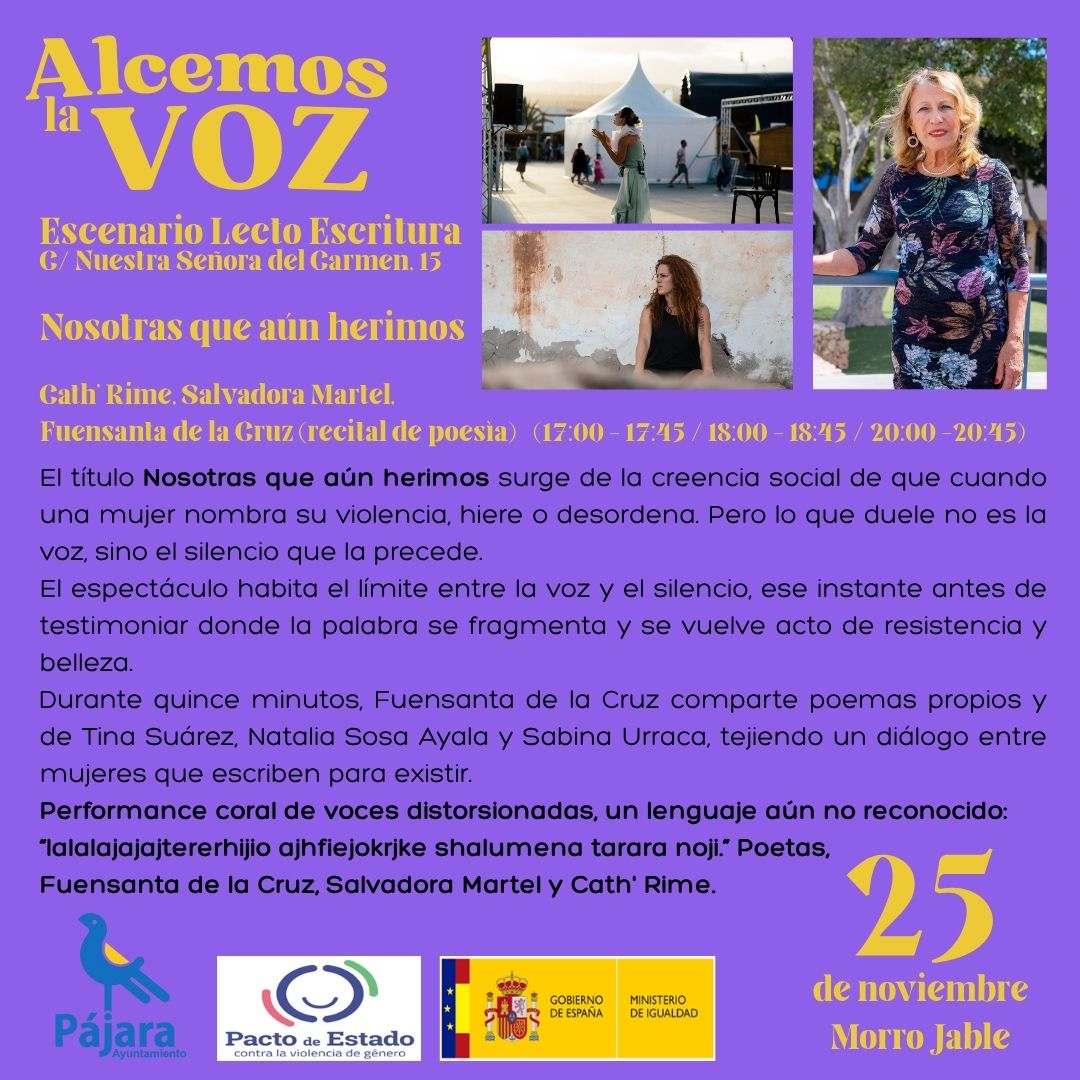 El Ayuntamiento de Pájara, a través de la Concejalía de Servicios Sociales, conmemora el Día Internacional de la Eliminación de la Violencia contra la Mujer, que se celebra mañana martes, 25 de noviembre, con el programa de actividades ‘Alcemos la voz. Entre las acciones, se llevará a cabo la lectura del manifiesto, así como diferentes talleres y espectáculos dirigidos a toda la población.