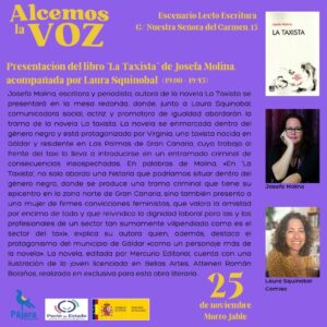 El escenario lecto escritura contará con el recital de poesía Fuentesanta de la Cruz, a cargo de Cath Rime y Salvadora Martel. A las 18:45 horas, se procederá a la lectura manifiesto a cargo de la responsable del Área, Kathaisa Rodríguez, y del alcalde, Alejandro Jorge, junto con la intervención de la escritora María Rosa Laso Ramos. A las 19;00 horas se presentará el libro La Taxista, de la autora Josefa Molina, acompañada por la profesional Laura Squinobal.