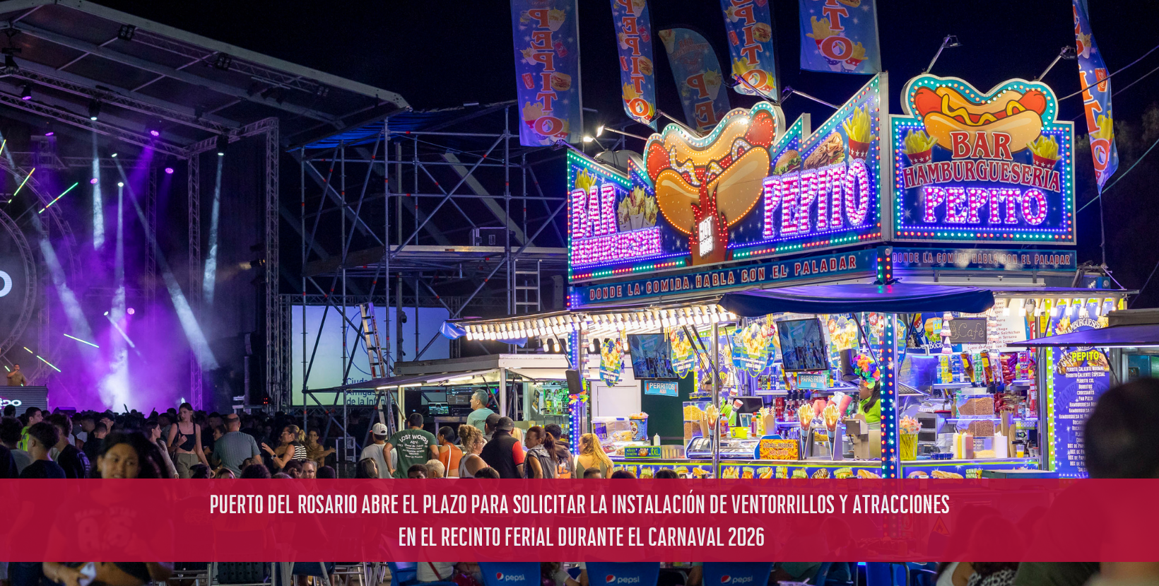 En Puerto del Rosario, a 7 de noviembre de 2025.- El Ayuntamiento de Puerto del Rosario informa de la apertura del plazo para solicitar la instalación de ventorrillos y atracciones de feria durante la celebración del Carnaval 2026, que se desarrollará del 6 al 22 de febrero en el Recinto Ferial de la capital majorera.