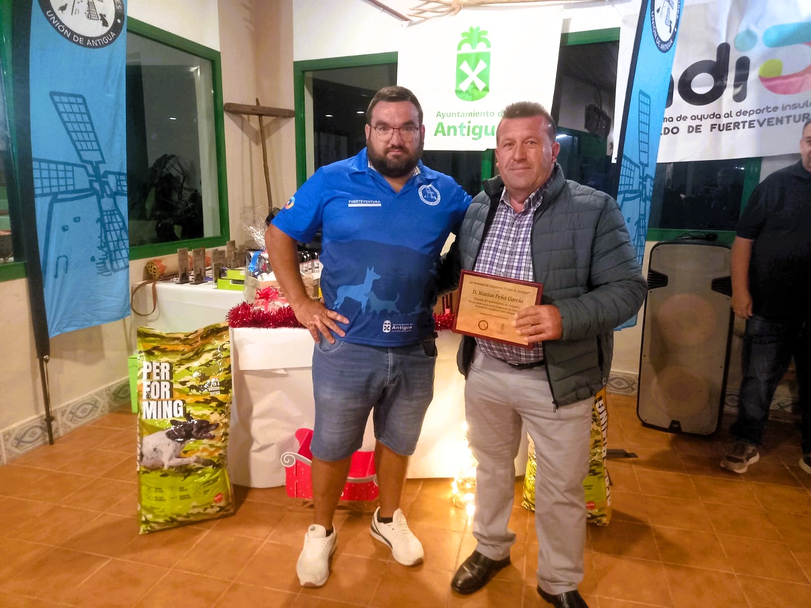 En este sentido, entregaron distinciones y placas, en Homenaje al compromiso y trayectoria de Juan Castillo Galván y Vicente Gonzales Santana, por el respaldo del Ayuntamiento de Antigua, entregaron también un reconocimiento al alcalde, Matías Peña y el concejal de Deportes, Samuel Torres, así como a Blas Cabrera Medina, recientemente nombrado nuevo presidente de la Federación de Caza de Fuerteventura.