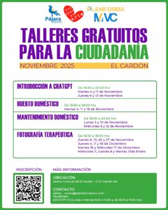 Los talleres, que abarcan disciplinas como jardinería, mantenimiento doméstico, informática, fotografía y artes creativas, se desarrollan, de lunes a jueves, en los centros culturales de Morro Jable, Costa Calma, Pájara y Cardón, con la previsión de ampliarse próximamente a otras localidades del municipio.
