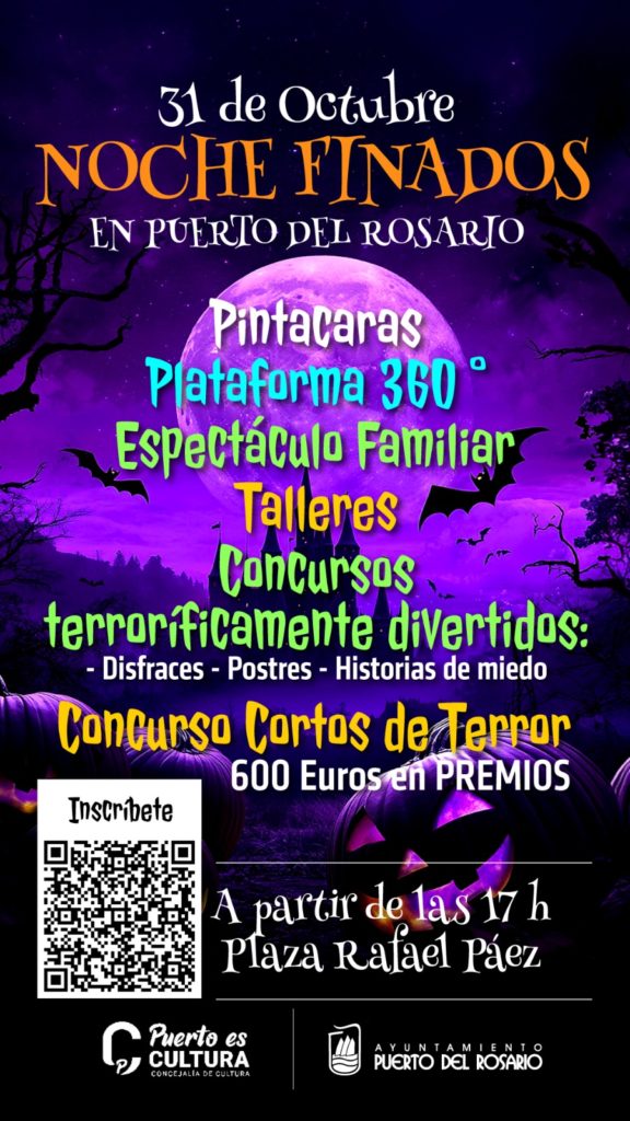 En Puerto del Rosario, a 24 de octubre de 2025.- El Ayuntamiento de Puerto del Rosario celebrará este 31 de octubre la tradicional Noche de Finados, una fecha que combina las costumbres más arraigadas del archipiélago con nuevas formas de expresión cultural vinculadas a la celebración de Halloween. Este año, la programación tendrá como eje central el Concurso de Cortos de Terror, junto a dos actos inspirados en la tradición popular de los ‘finaos’, la representación teatral dirigida por Javier Bolea y una interpretación de La Pioná.