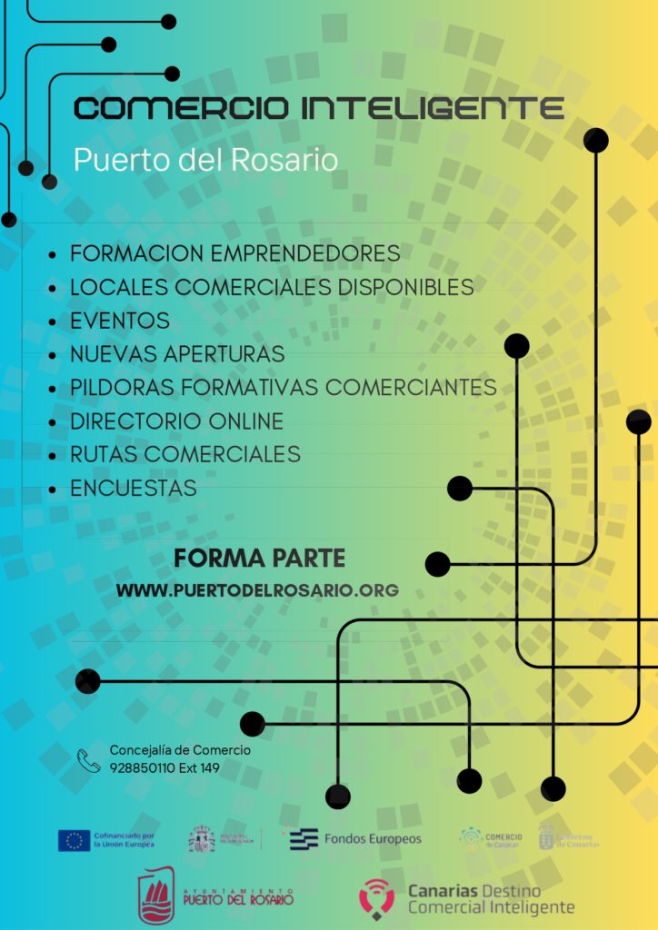 La iniciativa se desarrolla en el marco del programa Canarias Destino Comercial Inteligente, financiado por la Unión Europea a través de Fondos Europeos, el Ministerio de Hacienda, la Dirección General de Comercio y Consumo del Gobierno de Canarias y el propio Ayuntamiento de Puerto del Rosario.
