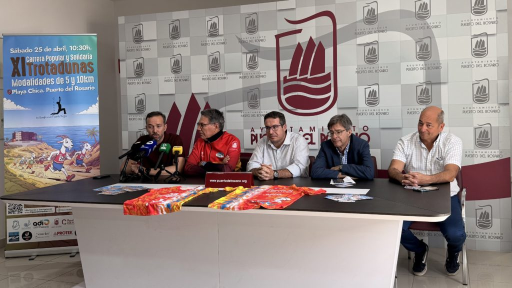 En Puerto del Rosario, a 16 de abril de 2026.- El Ayuntamiento de Puerto del Rosario ha acogido la presentación oficial de la XI edición de la Carrera Popular y Solidaria Trotadunas, una cita ya consolidada en el calendario deportivo del municipio que se celebrará el próximo 25 de abril en Playa Chica, con salida a las 10:30 horas. La prueba contará con dos modalidades, de 5 y 10 kilómetros, y prevé reunir a cerca de 380 participantes, superando ya los 300 inscritos en los días previos al evento.