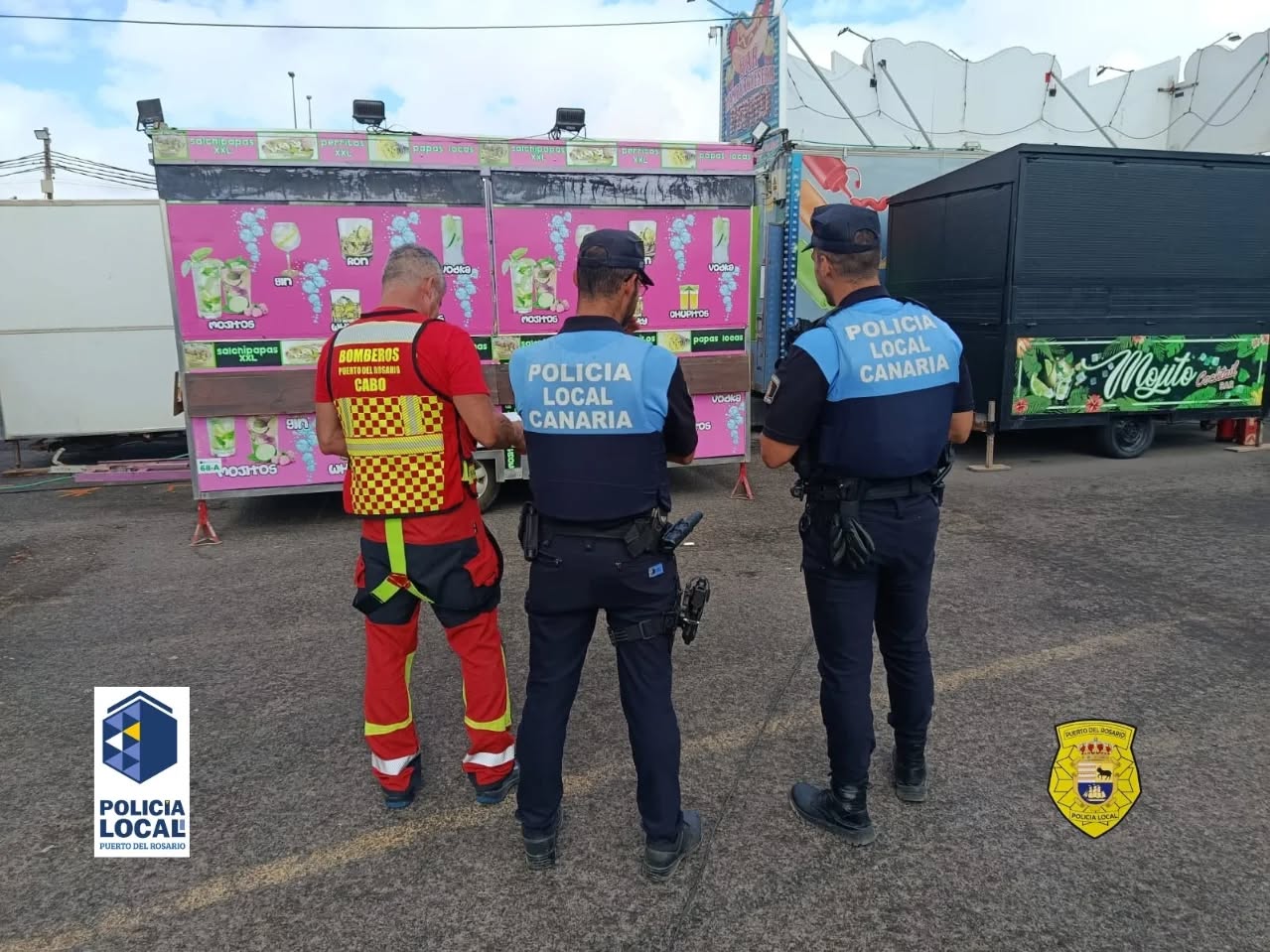 🚔La Policía Local de Puerto del Rosario, junto al 🚒 Servicio Municipal Contraincendios y el 👷 Técnico Municipal de Seguridad y Emergencias, han realizado la inspección de las atracciones instaladas por motivo de las Fiestas del Rosario, así como de los puestos de comida, bebida y ventorrillos.