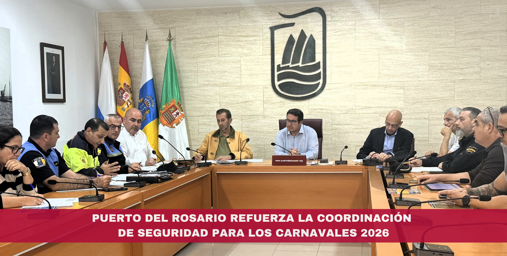 En Puerto del Rosario, a 3 de febrero de 2026.- El Ayuntamiento de Puerto del Rosario ha celebrado este lunes la Junta Local de Seguridad con el objetivo de coordinar el dispositivo especial de seguridad, tráfico y emergencias con motivo de la celebración de los Carnavales de Puerto del Rosario 2026.